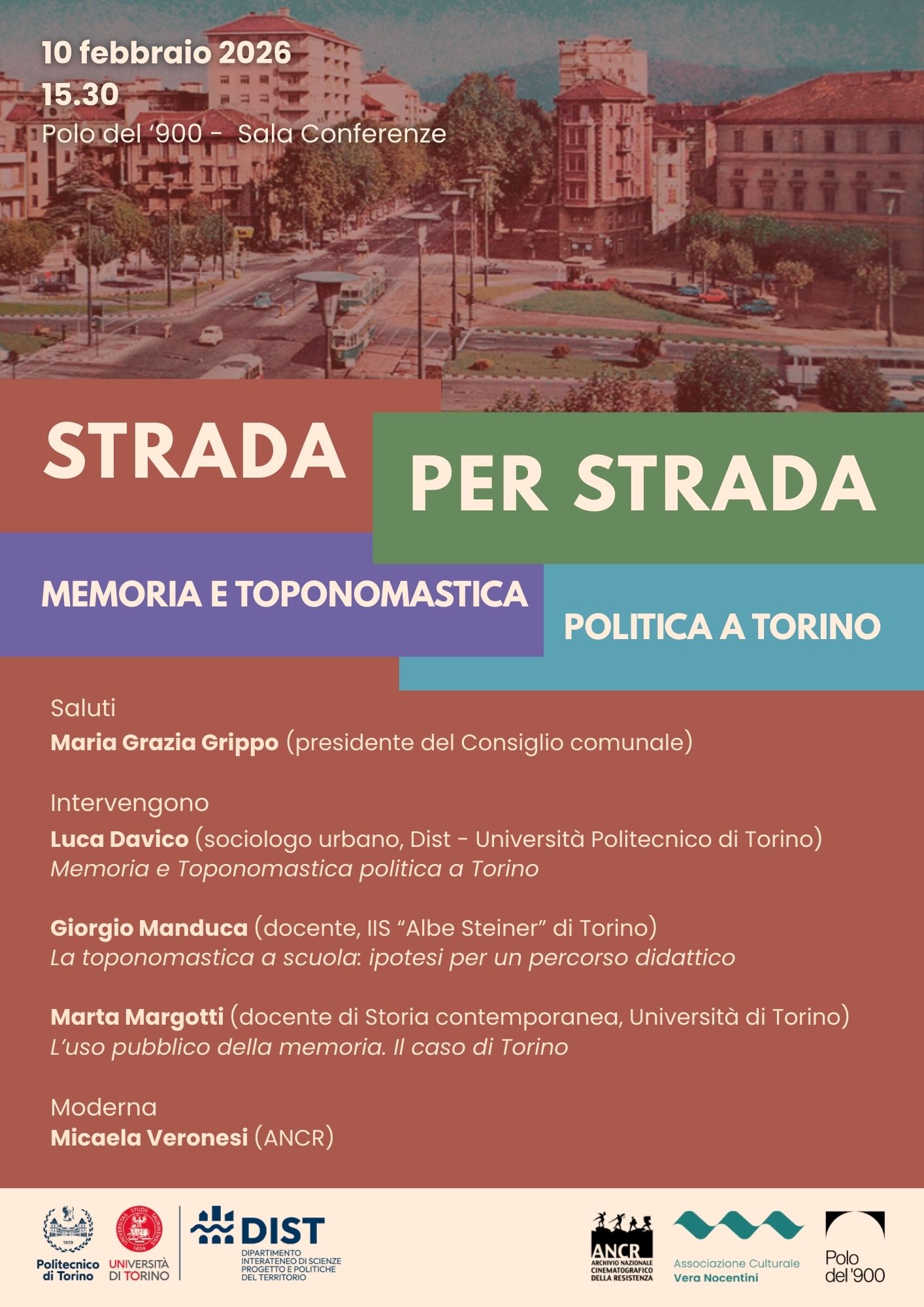 Un percorso a ritroso, strada dopo strada, realizzato dagli accademici del DIST in collaborazione con l’Amministrazione comunale, per illustrare le scelte che, nel tempo, hanno segnato la storia della toponomastica politica della città.